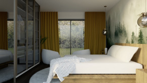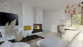Každý apartmán pozostáva z priestrannej obyvačky s krbom, kuchyne, kúpeľne, spálne, chodby a skladovej technickej miestnosti, spodné apartmány majú aj terasu, vrchné apartmány majú aj balkón, podľa priložených vizualizácii, prípadne je možnosť zväčšiť kuchyňu zrušením skladovej technickej miestnosti.