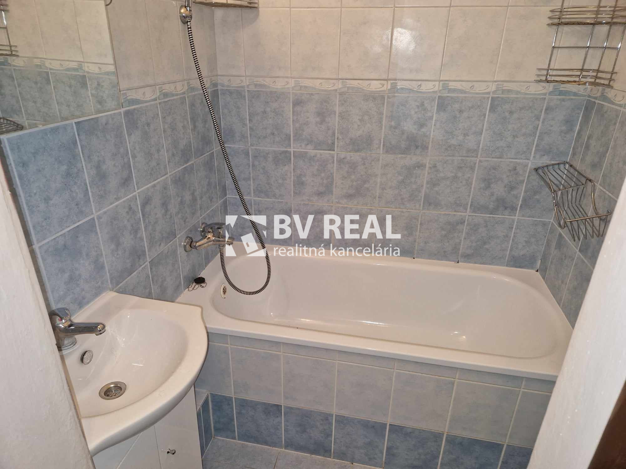 Murované bytové jadro, kde sa nachádza kúpeľňa s obloženou vaňou, umývadlom, obklady.