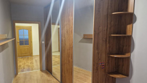 V chodbe sa nachádza vstavaná skriňa na odkladanie vecí so zrkadlami, kombinácia dlažba s plávajúcou podlahou.