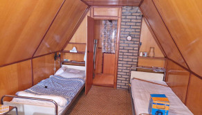 V zateplenom podkroví sa nachádza miestnosť na spanie s posteľami a nočnými stolíkmi a ďalší oddychový priestor s kreslom, prípadne na ďalšiu posteľ pre deti.