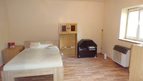 V miestnostiach obývateľnej časti domu boli položené plávajúce podlahy, vymenené plastové okná, vymenené interiérové dvere do obložkových zárubní, stierky, miestnosti vymaľované.