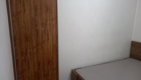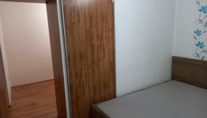 V priestrannej izbe je plávajúca podlaha, plastové okná, stierky a izba je predelená vstavanou skriňou na spálňu a obývačku.