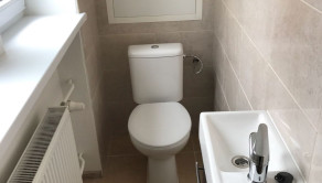 Samostatné WC, s umývadlom, dlažby, obklad.
