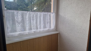 Byt má aj priestrannú loggiu s uzatvorením zasúvacími dverami a plastovými oknami, s dreveným obkladom a poličkami, z ktorej je výhľad na prírodu a detské ihrisko.