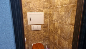 Samostatné WC so pslachovaním na Geberit, dlažba, obklad.