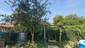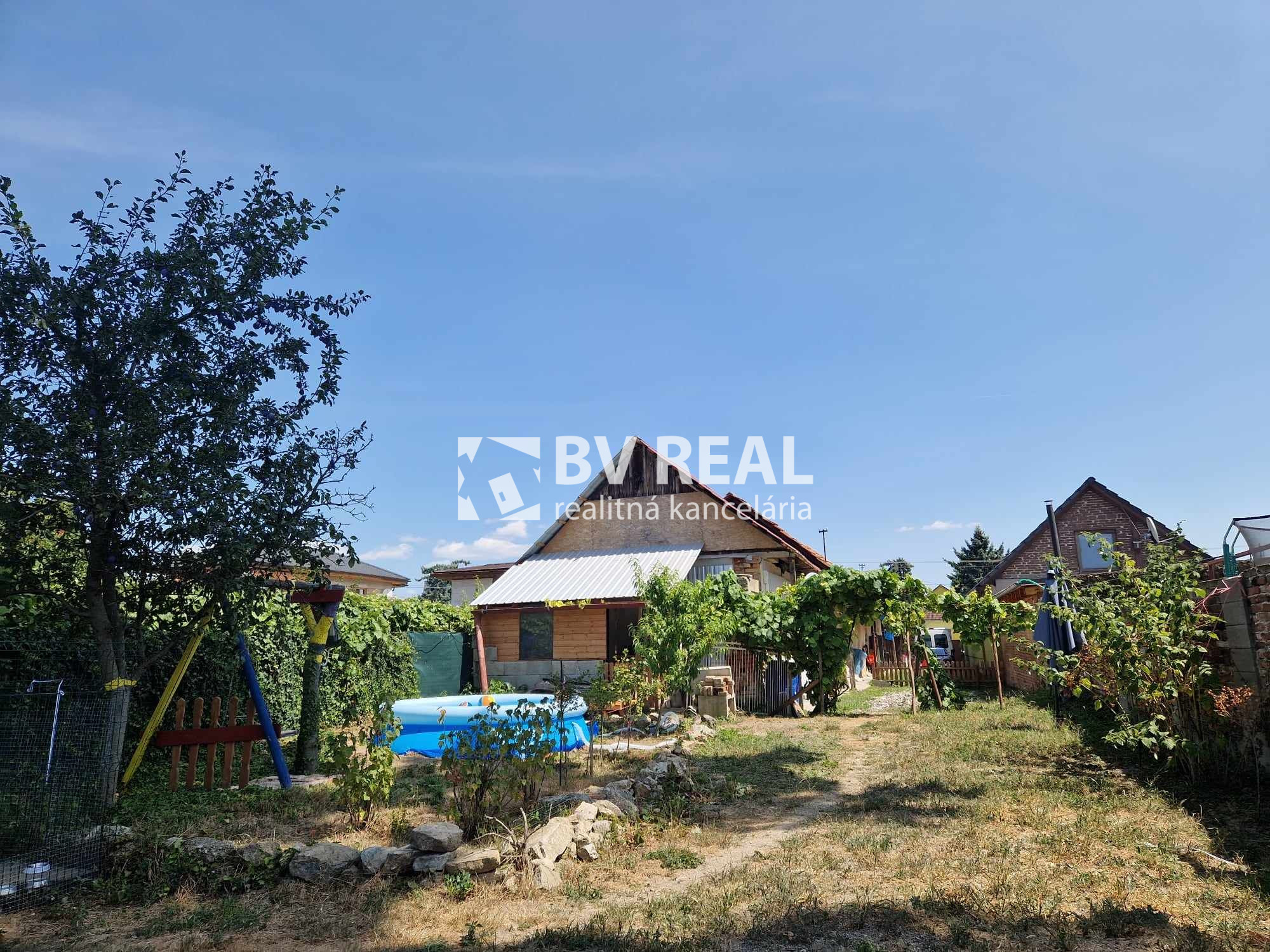 Za zadným domom je priestor na bazén, posedenie, záhrada a priestor na chov zvierat, nachádza sa tam aj hojdačka, latrína, voliéra pre psov.