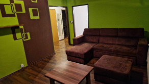 V obývačke je obývacia zostava, rosźťahovací gauč.