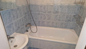 Murované bytové jadro, kde sa nachádza kúpeľňa s obloženou vaňou, umývadlom, obklady.