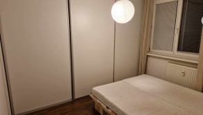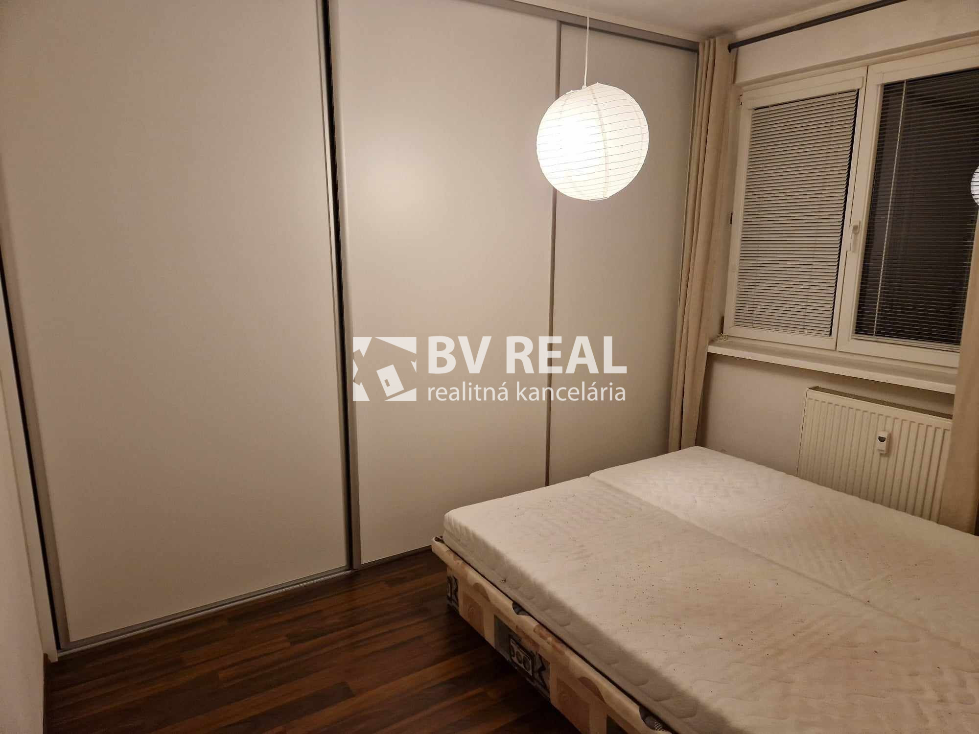 V izbe je manželská posteľ, vstavaná skriňa.