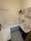 Murované bytové jadro, kde je kúpeľňa s vaňou, umývadlo, dlažba, obklad, priestor na práčku.