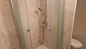 V kúpeľni sa nachádza sprchový kút, priestor na práčku, WC.